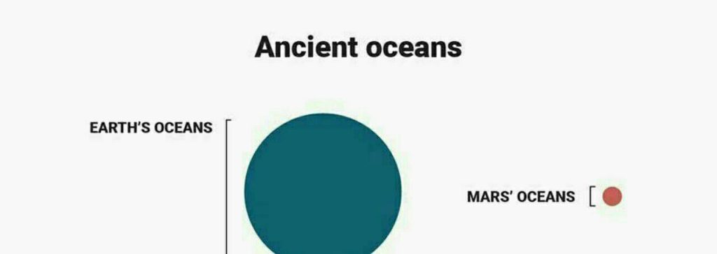 سیاره مریخ زمانی دارای چندین اقیانوس بوده است اما همه آنها روی هم تقریبا برابر با ۱/۵ درصد از کل آب روی زمین می شدند