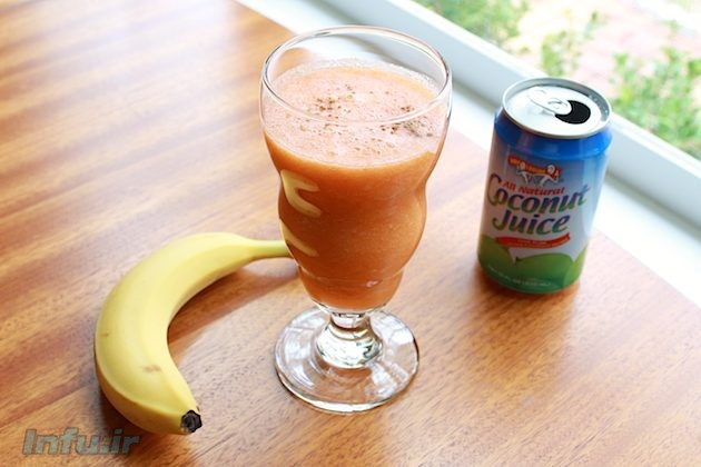 میوه ها را بشوئید و هویج، پرتقال و موز را پوست بگیرید. سپس آن ها را خرد کنید و در ظرف مخلوط کن همراه با شیر نارگیل و دارچین مخلوط کنید. زمانی که به غلظت دلخواهتان رسید مخلوط کن را خاموش کرده و بلافاصله بنوشید.