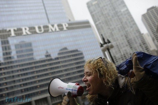 معترضان هنگام عبور از هتل ترامپ فریاد می‌زدند: «شرم بر تو!» – عکس: AFP