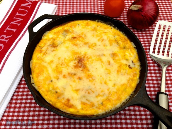 سپس کاهو ها را با تخم مرغ های هم زده شده اضافه می‌کنیم و پس از 30 ثانیه به داخل ماهیتابه می‌ریزیم و با یک کفگیر پلاستیکی تخم مرغ ها را به وسط ماهی تابه هدایت می‌کنیم به مدت 2 الی 3 دقیقه و روی آن پنیر را می‌پاشیم و 5 دقیقه اجازه می‌دهیم در همین حال به پخته شدن ادامه دهد تا تخم مرغ ها پوف کنند و پنیر کاملا ذوب شوند.