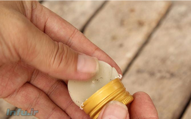 12 – سپس در داخل درب هر بطری مقداری پارافین شمع قرار دهید و درب هر بطری را ببندید