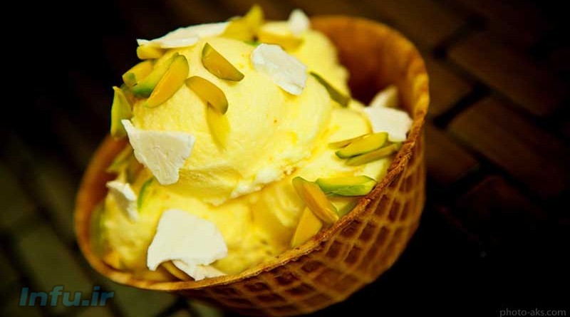 شکر و زرده تخم مرغ را خوب با هم مخلوط کنید. مقداری زعفران جوشیده شده به آن اضافه کنید و هم بزنید . باقی زعفران را بریزید و مجدداً هم بزنید تا حباب بزند و پف کند. شیر را بجوشانید و کم کم اضافه کنید . بستنی را در فریزر گذاشته ، بعد از ۲ ساعت درآورده و دوباره هم بزنید . این کار را ۳ بار تکرار کنید . در تکرار آخر، خامه را که فریز کرده اید، ریز کنید و در بستنی بریزید و هم بزنید. سپس دوباره در فریزر قرار دهید. بستنی را با قاشق گرد شکل بدهید . میتوانید با پسته و بادام و گردو تزئین کنید.