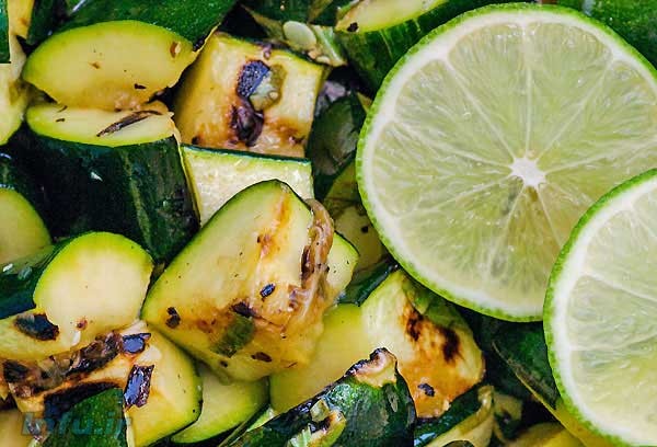 کدوسبز گریل شده به همراه ریحان و لیمو