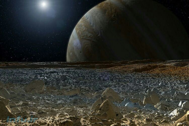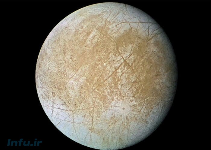 تصویری از قمر اروپای مشتری که توسط فضاپیمای گالیله‌ی ناسا گرفته شده است. شواهد زیادی حاکی از آنند که اروپا دارای یک اقیانوس زیرزمینی است که در آن آب وجود دارد و بسیاری از پژوهشگران براین باورند که بهترین مکان برای جستجوی زندگی فرازمینی است