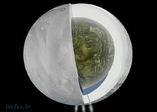 در این دیاگرام لایه درونی احتمالی انسلادوس، قمر سیاره زحل نشان داده شده است؛ سنجه‌های گرانشی نشان می‌دهند که زیر سطوح یخی احتمالا به صورت منطقه‌ای، آب وجود داشته باشد