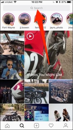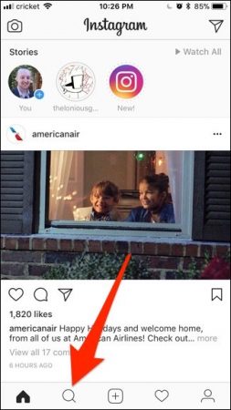 پس از باز کردن نرمافزار اینستاگرام آیکون جستجو را لمس کنید.
