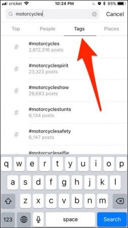 هشتگی را که قصد فالو کردن دارید، تایپ کنید و و مطمئن شوید که تب Tags را انتخاب نمودهاید.