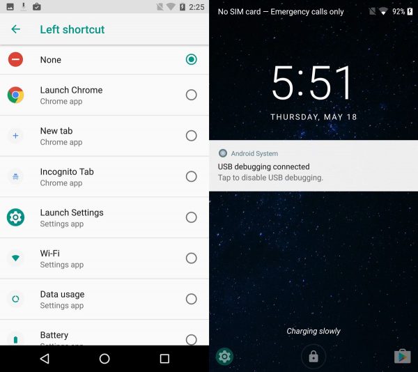 در صفحه System UI Tuner به دنبال گزینه Lock Screen باشید و روی آن ضربه بزنید. در این بخش شما با گزینه چپ و راست روبرو می شوید. می توانید یکی از این دو گزینه یا هر دو را تیک دار کنید. اگر گزینه چپ را انتخاب کنید، شورت کات ها در سمت چپ جا می شوند و شما برای اینکه آن ها را فعال کنید لازم است که اپ را به سمت راست بکشید تا فعال شده و اجرا شوند.