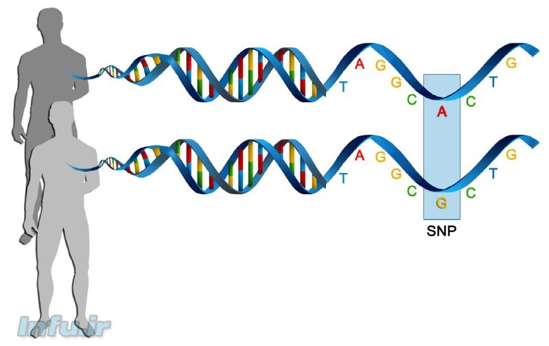 توالی ژنتیکی بین دو فرد در یک قسمت مشخص از دی ان ای هر دوشان نشان داده شده. توالی ژنتیکی فرد اول TAGGCACTG است و توالی ژنتیکی فرد دوم عینا تکرار شده اما فقط یک نوکلئوتید آن با توالی فرد قبل متفاوت است که این توالی را تشکیل می دهد: TAGGCGCTG. یعنی ششمین نوکلئوتید(از سمت چپ) در توالی ژنتیکی این دو فرد با یک دیگر فرق میکند. این تفاوت ایجاد شده در اثر اختلاف یک نوکلئوتید را یک SNP یا چندریختی تک-نوکلئوتیدی می گویند. در تحقیق مذکور هم دانشمندان به دنبال SNPهایی بین افراد هستند که به نظر میرسد با هوش آنها رابطه مستقیم داشته باشد. چرا که این SNP قابلیت دستکاری خصلت های مختلف افراد از جمله هوش را دارند. این ژن های ما هستند که دستورات ساخت پروتئین ها را که اجزای پایه ای ساختار بدن ما هستند، کنترل میکنند.