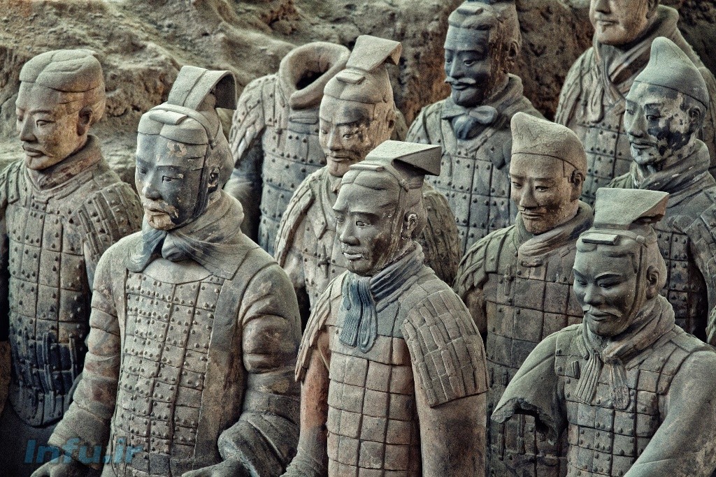 ارتش تراکوتا،مجموعه عظیمی از سرباز و اسب که بدستور اولین امپراتور چین “کین شی هانگ” ساخته شد تا در آن دنیا ارتشی داشته باشد.این مجموعه در سال 1974 کشف شد.