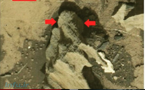 تصویری از سطح مریخ توسط کاوشگر کنجکاوی و سنگی که شبیه سر انسان است.
