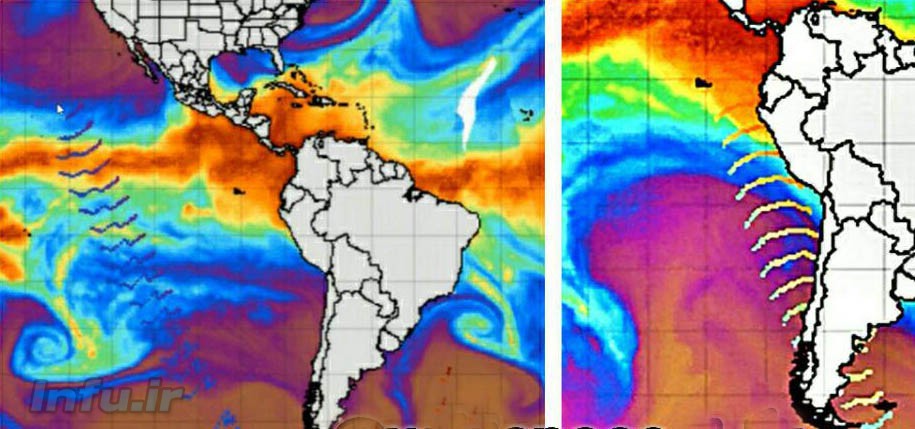 تصاویر بالا توسط سیستم تصویربرداری مایکروویو از قطب جنوب گرفته شده ،در این تصاویر که به فاصله چند ماه از هم گرفته شده،امواج اسرار آمیزی از انرژی دیده شده است که کاملا ناشناخته هستند
