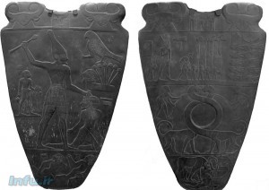 لوح نارمر، از دو بخش پشت و رو تشکیل شده است و متحد کردن مصر بالا و پایین توسط نارمر را نشان می دهد. در یک سمت نارمر تاج مصر بالا را بر سر دارد و در یک سمت تاج مصر پایین. لوح نبرد سختی را نشان می دهد. در یک سمت آن تصویر نارمر در حال اعدام یک سرباز دشمن که پاپیروس از بینی او بیرون زده است را نشان می دهد و در سمت دیگر نارمر در حال بازدید از کشته های ارتش دشمن.