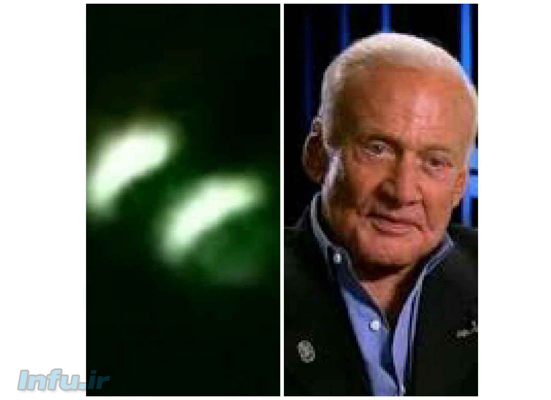 باز آلدرین می گوید زمانی که آپولو یازده با غرش رعد آسای قوی ترین انجین ساخته شده بدست بشر یعنی موشک ساترن 5 با آن نیروی ویران کننده اش، از زمین کنده شد و پس از چند دقیقه که از پنجره بیرون را نگاه کردم، دیدم شی ای درخشان پا به پای ما دارد پرواز می کند، چند بار سرم را بi طرف نیل برگرداندم و دوباره پنجره را نگاه کردم کماکان می دیدمش، ناگهان به نیل اشاره کردم و با دست به پنجره اشاره کردم و گفتم نیل می تونی بگی چیه، انعکاس خورشید که نمی تونه باشه، ضمنا شی دارای شکل خاصیه، بلافاصله کانال ارتباطی را عوض کرده و تا گفتم هیوستون….. و می خواستم بگم ما یه شی عجیب در کنارمون داریم، ناگهان نیل اجازه نداد ادامه دهم و در جواب هیوستون که می پرسید، چکار دارید، فقط گفتیم چیزی نبود می خواستیم در مورد تراجکتوری بپرسیم، پس از دقایقی از نیل آرمسترانگ پرسیدم، چرا نگذاشتی موضوع را بگویم که در جواب گفت اگر بهشون می گفتی در برگشت از ماموریت باید ساعت ها سوال و جواب می شدیم، بنابراین من نمی تونم بگم اون شی یا نور عجیب چی بود فقط بر اساس تعاریف مرسوم یه شی ناشناخته پرنده بود.
