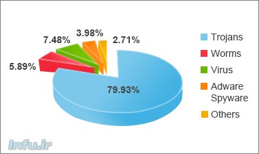 برخی این بدافزارها قادرند کنترل رایانهی شما را به دست گرفته و از آن برای حمله به رایانههای دیگر استفاده کنند. نمودار زیر –که از گزارش ۲۰۱۳ شرکت پاندا برداشته شده است- میزان دستگاههای آلوده شده را بر اساس نوع طبقهبندی کرده است.