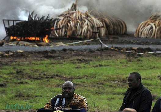بیش از ۱۰۵ تن عاج فیل و در حدود یک و نیم تن شاخ کرگدن در پارک ملی «نایروبی»، پاییتخت کنیا و در برابر دیدگان هزاران نفر از مردم این شهر به آتش کشیده شدند.