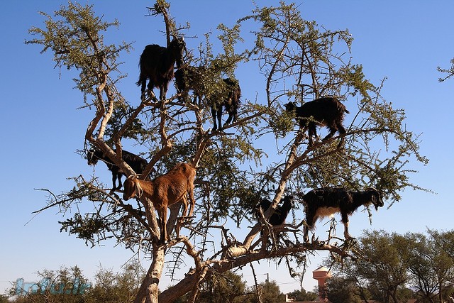 اولین بار که نگاهم به این عکس ها افتاد، با خودم فکر کردم که حتما ساختگی و فتوشاپی هستند. مگر می شود که این همه بز از درخت بالا بروند؟ ولی بعد از کمی جستجو متوجه شدم که بزهای کشور مراکش علاقه ی زیادی به بالا رفتن از درخت دارند!