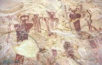 حکاکی بر روی سنگ “پتروگلیف” در آفریقا،مربوط به چند هزار سال پیش، با موجوداتی عجیب شناور در آسمان،با شاخ یا شاید آنتن…بنظر میرسد انسان را در شکار کمک می کنند..
