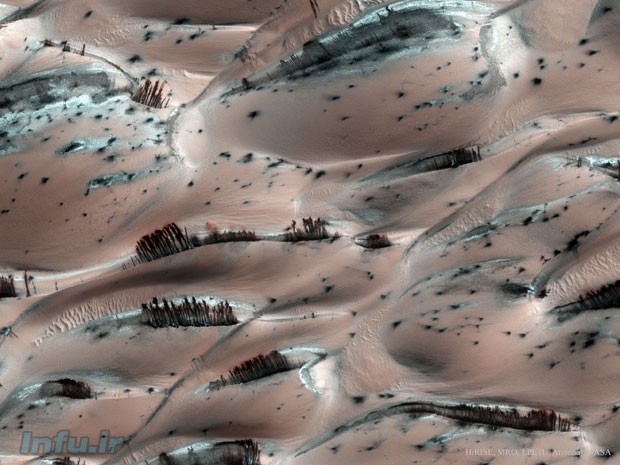 مگر مریخ درخت دارد ؟ ای کاش می توانستیم پاسخی مثبت به این پرسش بدهیم اما باید گفت که خیر ، متاسفانه مریخ درخت ندارد اما تصویری که در این مطلب از مریخ مشاهده می کنید نمایی زیبا از رگه های قهوه‌ای روی سطح این سیاره را نشان می دهد که همچون درختانی سر به فلک کشیده نمایان شده اند.