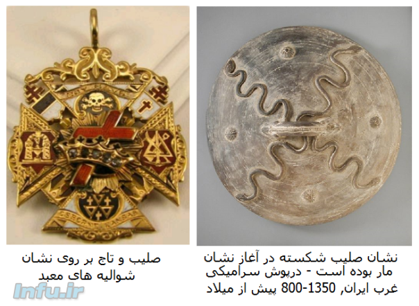 صلیب و تاج. دین و سلطنت دو ابزار کنترل جهان بوده اند. پیش از این گفته ام که صلیب شکسته خود در آغاز سمبل مار بوده است. اسکاتلندی های باستان از نشانهای صلیب شکسته, صلیب مالت و مار استفاده میکردند. میدانید چرا؟