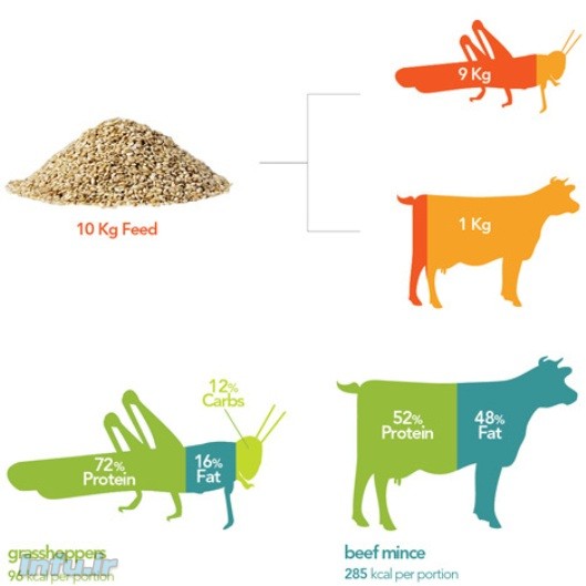 در این میان گزارش جدید سازمان فائو تاکید دارد که حشرات از یک سو میتوانند جایگزین مناسبی برای بسیاری از غذاها باشند و از سوی دیگر میتوانند به عنوان خوراک دامها و پرندگان مورد استفاده قرار گیرند و به این ترتیب هزینههای تولید مواد غذایی را کاهش دهند. این گزارش که با نام «حشرات خوردنی، چشمانداز آینده مواد غذایی و امنیت تغذیه» به تازگی منتشر شده است میگوید انواع سوسکها، لارو حشرات، سنجاقکها، مورچههای برگخوار، ملخ و موریانه میتواند منبع غذایی سرشاری برای ما و نسلهای آینده باشد. این نتیجه تحقیقات گروهی از دانشمندان است که تاکید دارند ما فواید حشرات را به عنوان منابعی ارزان که به سرعت نیز تکثیر میشوند از یاد بردهایم. حشرات برخلاف بسیاری از جاندارن دیگر مانند دامها، میتوانند با استفاده از حجم کمی از پسماندهها، به سرعت و در میزان زیاد تکثیر شوند. برخی حشرات میتوانند در عرض هفت روز بیش از ۱۰۰۰ تخم بگذارند. این محققان روی حشراتی که در اطراف کارخانههای مواد غذایی و آبجوسازیها رشد و نمو میکنند تحقیق کرده و به این نتیجه رسیدهاند آنها با استفاده از ضایعات و دور ریزهای این مراکز سالانه صدها تن حشره تولید میکنند. این گزارش نشان میدهد مراتع، مرغداریها و دریاهای کره زمین به زودی دیگر قادر نخواهند بود شکم جمعیت رو به افزایش دنیا را سیر کنند. کمبود آب، زمین و همچنین آلودگیهای محیطی ناشی از تولید مواد غذایی نیز سد محکم دیگری برابر افزایش تولید غذاست.