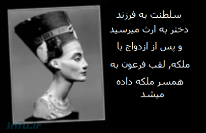 ملکه لقب قانونی و رسمی بود و فرعون میبایست با ملکه ازدواج کند تا به لقب شاهی برسد. چنان که مصطفی گادالا در کتاب خود, فریب تاریخی, نوشته است «تمدن مصر به زنان مصر سپرده میشد. وارث تاج و تخت زن بود و نه مرد, و مردی که این زن برای ازدواج برمی گزید به مقام فرعونی میرسید.»