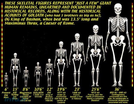 این اشکال اسکلتی نشان دهنده ی بازمانده ی انسان های غول آسا هستند که از زیر زمین بیرون آورده شده و بصورت سوابق تاریخی مستند شده اند و همراه با شرح تاریخی