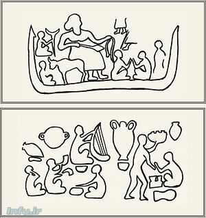 عکس بالا طراحی ای بر روی یک مهر 3400 ساله در دزفول است، ﻣﻬﺮﻧﮕﺎﺭﻩ ای 3400 ﺳﺎﻟﻪ؛ که ﺳﯿﻤﺎﯾﯽ ﺍﺯ ﺑﺰﻡ ﺭﺍﻣﺸﮕﺮﺍﻥ ﺭﺍ ﻧﺸﺎﻥ ﻣﯽﺩﻫﺪ، نشان از اصیل بودن موسیقی ایرانی. ﺩﺭ ﺍﯾﻦ ﮔﺮﻭﻩ ﺭﺍﻣﺸﮕﺮﺍﻥ، ﻣﯽﺑﯿﻨﯿﻢ ﮐﻪ ﻧﻮﺍﺯﻧﺪﻩﺍﯼ « ﭼﻨﮓ » ﻭ ﺩﯾﮕﺮﯼ « ﺷﯿﭙﻮﺭ » ﻭ ﺁﻥ ﺩﯾﮕﺮ « ﺗﻨﺒﮏ » ﻣﯽﻧﻮﺍﺯﺩ . ﭼﻬﺎﺭﻣﯿﻦ ﺭﺍﻣﺸﮕﺮ ﺩﺭ ﺍﯾﻦ ﻣﯿﺎﻥ، ﺧﻮﺍﻧﻨﺪﻩﺍﯼ ﺍﺳﺖ ﮐﻪ « ﺁﻭﺍﺯ » ﻣﯽﺧﻮﺍﻧﺪ . ﻫﻤﭽﻨﯿﻦ ﺩﺭ ﺍﯾﻦ ﺑﺰﻡ ﮐﻬﻦ، ﺁﺯﺍﺩﻩﺍﯼ ﺭﺍ ﻣﯽﺑﯿﻨﯿﻢ ﮐﻪ ﺑﺮ ﻓﺮﺷﯽ ﻧﺸﺴﺘﻪ ﻭ ﺍﺯ ﺍﻭ ﭘﺬﯾﺮﺍﯾﯽ ﻣﯽﺷﻮﺩ . ﻣﺎ ﻫﻤﺎﻧﻨﺪ ﺍﯾﻦ ﺧﻨﯿﺎﮔﺮﺍﻥ ﺭﺍ ﺩﺭ ﺍﯾﻼﻡ ﻭ ﺩﺭ ﺳﺪﻩ 27 ﭘﯿﺶ ﺍﺯ ﻣﯿﻼﺩ ﻭ ﺍﺯ ﺯﻣﺎﻥ ﭘﺎﺩﺷﺎﻫﯽ « ﭘﻮﺯﻭﺯ ﺍﯾﻦ ﺷﻮﺷﯿﻨﺎﮎ » ﺩﺭ ﺷﻮﺵ ﻣﯽﺷﻨﺎﺳﯿﻢ . ﺍﺯ ﻫﻤﯿﻦ ﮔﺎﻩ، ﻣُﻬﺮ ﻭ ﻧﺸﺎﻧﻪﻫﺎﯾﯽ ﺩﺭ ﺩﺳﺖ ﺍﺳﺖ ﮐﻪ ﻧﺸﺎﻥ ﻣﯽﺩﻫﻨﺪ، ﺧﻨﯿﺎﮔﺮﺍﻥ ﺑﺴﯿﺎﺭﯼ ﺩﺭ ﺍﯾﺮﺍﻥ ﻣﯽﺯﯾﺴﺘﻨﺪ . ﺩﺭ ﺍﯾﻦ ﻫﻨﮕﺎﻡ، ﻧﻮﺍﺧﺘﻦ ﭼﻨﮓ ﺑﺴﯿﺎﺭ ﮔﺴﺘﺮﺵ ﺩﺍﺷﺘﻪ ﺍﺳﺖ ﻭ ﺍﯾﻦ ﺳﺎﺯ ﺍﺯ ﺳﺎﺧﺘﻪﻫﺎﯼ ﺍﯾﺮﺍﻧﯿﺎﻥ ﺍﺳﺖ . ﻣﺎ، ﻣﺎ، ﻧﮕﺎﺭﻩﺍﯼ ﺭﺍ ﺩﺭ ﺩﺳﺖ ﺩﺍﺭﯾﻢ ﻭ ﻣﯿﺪﺍﻧﯿﻢ ﮐﻪ ﺩﺭ ﭘﺎﺩﺷﺎﻫﯽ « ﺷﻮﮐﺎﻝ ﻣﺎﻩ ﻫﻮ » ﻭ ﺍﺯ ﺳﺪﻩ 17 ﭘﯿﺶ ﺍﺯ ﻣﯿﻼﺩ ﺩﺭ ﺍﯾﺮﺍﻥ، ﺗﺎﺭ ﻧﻮﺍﺧﺘﻪ ﻣﯽﺷﺪ . ﺑﺎ ﯾﺎﻓﺘﻦ ﯾﮏ ﮐﻨﺪﻩ ﮐﺎﺭﯼ ﺩﺭ ﺍﯾﻼﻡ ﺑﺎﺯﻫﻢ ﺁﮔﺎﻫﯽ ﺩﺍﺭﯾﻢ ﮐﻪ ﺧﻨﯿﺎﮔﺮﺍﻥ ﺍﯾﺮﺍﻧﯽ؛ ﺩَﻑ ﺭﺍ ﻫﻤﺮﺍﻩ ﭼﻨﮓ ﻣﯽﻧﻮﺍﺧﺘﻨﺪ . ﺩﺭ ﺍﯾﻦ ﮐﻨﺪﻩ ﮐﺎﺭﯼ ﻫﻤﭽﻨﯿﻦ ﺩﯾﺪﻩ ﻣﯽﺷﻮﺩ ﮐﻪ ﺍﺯ ﻣﯿﺎﻥ 11 ﺗﻦ ﺧﻨﯿﺎﮔﺮ؛ 8 ﺗﻦ ﭼﻨﮓ، 2 ﺗﻦ ﻧﯽ ﻭ ﯾﮏ ﺗﻦ ﺩﻫﻞ ﻣﯽﻧﻮﺍﺯﻧﺪ . 15 ﺯﻥ ﺧﻮﺍﻧﻨﺪﻩ، ﺩﺭ ﻣﯿﺎﻥ ﺭﺍﻣﺸﮕﺮﺍﻥ ﺩﯾﺪﻩ ﻣﯽﺷﻮﻧﺪ ﮐﻪ ﺩﺭ ﺣﺎﻝ ﮐﻒ ﺯﺩﻥ ﻫﺴﺘﻨﺪ . ﺑﺎﯾﺪ ﺍﻓﺰﻭﺩ ﮐﻪ ﺍﺯ ﺍﯾﻦ ﻧﻤﻮﻧﻪﻫﺎ ﺩﺭ ﺳﺮﺍﺳﺮ ﺍﯾﺮﺍﻥ ﺑﺴﯿﺎﺭ ﺩﯾﺪﻩ ﺷﺪﻩ ﺍﺳﺖ . ﻣﺎ ﺑﻪ ﯾﺎﺭﯼ ﺑﺎﺳﺘﺎﻥ ﺷﻨﺎﺳﯽ ﺍﺯ ﻟﺮﺳﺘﺎﻥ ﻣﺎﻧﻨﺪ ﺍﯾﻼﻡ ﺁﮔﺎﻫﯽ ﺩﺍﺭﯾﻢ ﮐﻪ ﺩﺭ ﺍﯾﻦ ﺑﺨﺶ ﺍﺯ ﺍﯾﺮﺍﻥ ﻫﻢ ﺍﺯ ﺳﺪﻩ 9 ﭘﯿﺶ ﺍﺯ ﻣﯿﻼﺩ، ﺗﺎﺭ ﻧﻮﺍﺧﺘﻪ ﻣﯽﺷﺪﻩ ﺍﺳﺖ . ﺩﺭ ﺑﺨﺸﻬﺎﯼ ﺩﯾﮕﺮﯼ ﺍﺯ ﺍﯾﺮﺍﻥ ﻭ ﺍﺯ ﺳﺎﻝ 559 ﭘﯿﺶ ﺍﺯ ﻣﯿﻼﺩ، ﺳﻔﺎﻟﻬﺎﯾﯽ ﺩﺭ ﺗﭙﻪ ﺳﯿﻠﮏ ﮐﺎﺷﺎﻥ ﻭ ﻣﺮﻭﺩﺷﺖ ﭘﯿﺪﺍ ﺷﺪﻩ ﮐﻪ ﺳﯿﻤﺎﯾﯽ ﺍﺯ ﭘﺎﯾﮑﻮﺑﯽ ﻭ ﺩﺳﺖ ﺍﻓﺸﺎﻧﯽ ﺑﺮ ﺁﻧﻬﺎ ﻧﮕﺎﺭﮔﺮﯼ ﺷﺪﻩ ﺍﺳﺖ ﺍﺯ ﻫﺮﺩﻭﺕ ﻧﻘﻞ ﺍﺳﺖ ﮐﻪ ﺩﺭ ﺩﻭﺭﺍﻥ ﺍﻣﭙﺮﺍﺗﻮﺭﯼ ﻫﺨﺎﻣﻨﺸﯽ ﮐﻪ ﺑﻪ « ﺍﻣﭙﺮﺍﻃﻮﺭﯼ ﭘﺎﺭﺳﯽ » ﻧﯿﺰ ﻣﻌﺮﻭﻑ ﺍﺳﺖ، ﻣﻮﺳﯿﻘﯽ ﻧﻘﺶ ﻣﻬﻤﯽ ﺑﺨﺼﻮﺹ ﺩﺭ ﺩﺭﺑﺎﺭﻫﺎ ﺩﺍﺷﺘﻪﺍﺳﺖ . ﺍﻭ ﻣﯽﮔﻮﯾﺪ ﮐﻪ ﻭﺟﻮﺩ ﻣﻮﺳﯿﻘﯽ ﺑﺮﺍﯼ ﻣﺮﺍﺳﻢ ﻣﺬﻫﺒﯽ ﭘﺮﺳﺘﺶ ﺧﺪﺍﻭﻧﺪ، ﺑﺴﯿﺎﺭ ﺿﺮﻭﺭﯼ ﺑﻮﺩﻩﺍﺳﺖ .