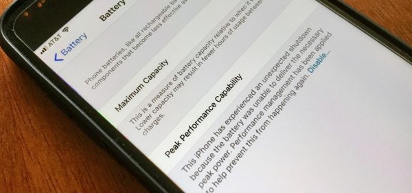 اگر آیفونتان حداقل یک بار به خاطر باتریاش خاموش شده باشد، بخش مدیریت توان دستگاه به طور خودکار فعال میشود، چون به گفتهی خود اپل باتری قادر به تامین توان مورد نیاز دستگاه در هنگام استفاده از حداکثر قدرت آن نیست. در این صورت، در زیر گزینهی Peak Performance Capability یک لینک آبی رنگ Disable خواهید دید.