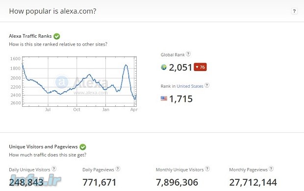 • برخلاف پیج رنک گوگل هر چقدر عددی که توسط سیستم رتبه بندی الکسا برای یک وب سایت در نظر گرفته می شود کمتر باشد، بهتر است.