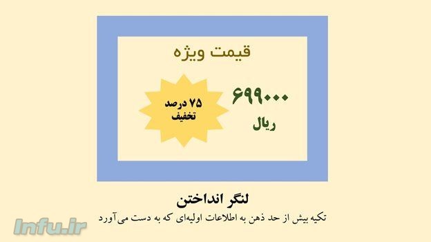 ذهن همیشه برای اولین اطلاعاتی که به دست میآورد ارزش خاصی قائل است. فرض کنید رزیتا از ماشین حسن خوشش آمده و به او پیشنهاد فروش میدهد. حسن قیمت ماشین را ۵۰ میلیون اعلام میکند. هفته بعد در حالی که رزیتا آماده خرید میشود، حسن به او اعلام میکند که ماشین را ۴۰ میلیون حاضر است واگذار کند. رزیتا در این موقعیت گمان میکند که معامله خوبی در شرف انجام است. اما اگر هفته قبل حسن قیمت ماشین را ۳۵ میلیون اعلام میکرد، احتمالا قیمت جدید چنین تاثیری بر رزیتا نمیگذاشت. نخستین قیمتی که به رزیتا اعلام میشود تاثیر زیادی بر تصمیم نهاییاش برای خرید دارد.