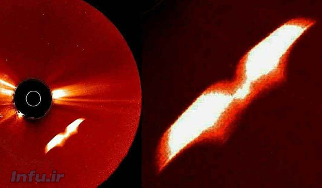 نرم افزار سوهو که تصاویر تلسکوپ اینفرارد از خورشید را منتشر می کند،این تصویر عجیب را اخیرا منتشر نمود.شی ای شبیه یک پرنده در مجاورت خورشید دیده می شود.