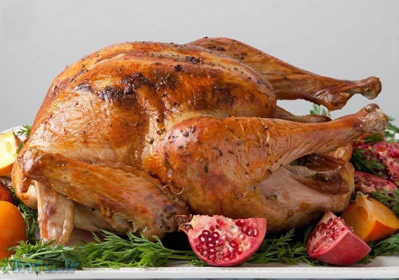 طرز تهیه بوقلمون شکمپر با سوسیس، سیب و کرنبری