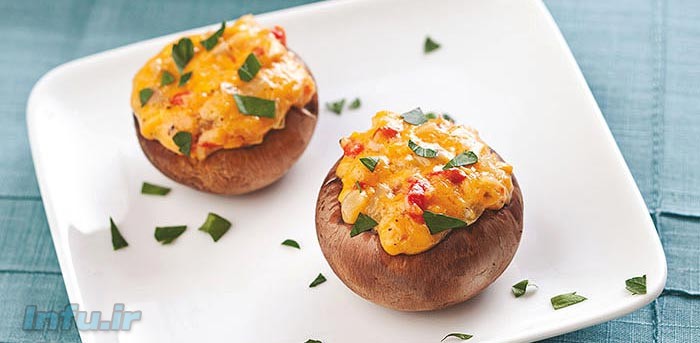 - حالا قارچهای خالی شده را با مواد بالا پرکنید .به مدت ۵ الی ۸ دقیقه در فر بپزید .مواد را با جعفری سرو کنید.