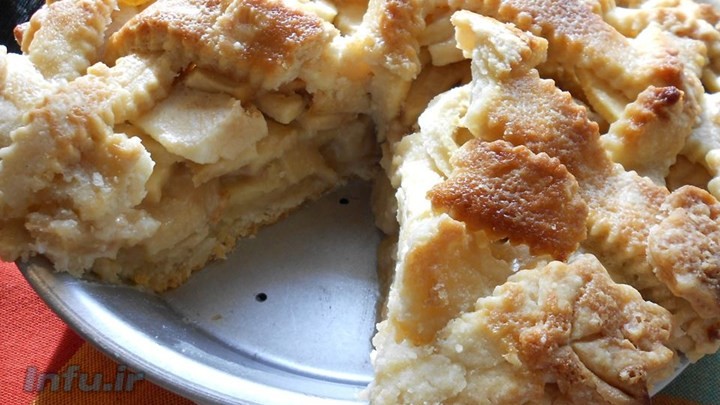 سپس پوسته کلوچهها را در زیر ظرف قرار داده و با تکههای سیب پر میکنیم و مواد را اضافه میکنیم و دمای فر را به ۱۷۵ درجه سانتی گراد کاهش داده و حدود ۳۵ تا ۴۵ دقیقه درون فر میپزیم.