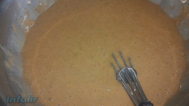 مواد را خوب هم بزنید تا خمیر کاملا غلیظ شود.