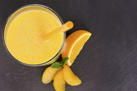 طرز تهیه: شیر، ماست، پرتقال و یخ را در مخلوط کن بریزید و حدود یک دقیقه با هم مخلوط کنید. سپس این مخلوط را در لیوان بریزید و روغن کتان را به آن اضافه کنید و به هم بزنید.