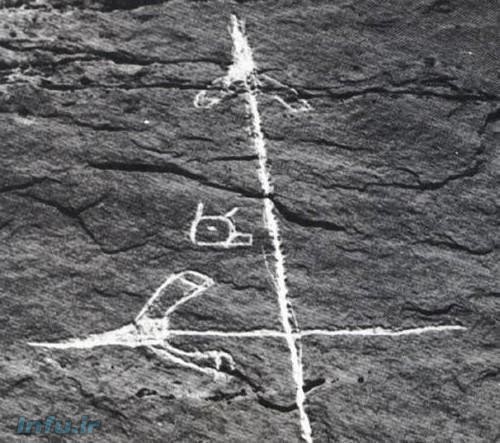 این عکس توسط وایت بیر از سطح صخره ای گرفته شده که در نزدیکی اورایبی در آریزونا قراردارد . حکاکی این سنگ بسیار قدیمی است و قدمت آن به مدتها قبل از اختراع هواپیما بر می گردد . بین دو سفینه ، شی ء عجیبی قراردارد که می تواند ماهواره یا قمر مصنوعی باشد .