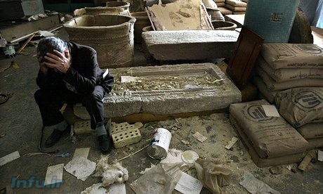 در تاریخ 16 آوریل 2003 تلویزیون المنار در لبنان گزارش داد که در حالیکه دسته های نظام مند خلافکاران صنایع و ساختمانهای دولتی را بدون هیچ واکنشی از طرف نیروهای آمریکایی غارت می کردند, وزات نفت از لحظه ای که آمریکا کنترل بغداد را به دست گرفت تحت نظارت شدید 24 ساعته قرار قرار گرفته بود. شایعات فراوان و مداومی وجود داشت مبنی بر اینکه آمریکا غارت ها را برنامه ریزی کرده بود. بعضی از مهم ترین این غارتها در موزه ملی اتفاق افتاد, جایی که قدیمی ترین آثار مربوط به حضور بشر بر روی زمین, آثاری مانند گهواره ابراهیم, الواح گلی سومری, و سایر آثاری که اهمیتی حیاتی در درک ریشه های بشر داشت نگهداری میشد. این آثار اطلاعات فراوانی درباره ریشه های شاه-خدایان مقدس آنوناکی در خود داشت, کسانی که اکنون دوباره سر براورده بودند تا نفت جهان را در انحصار خود داشته باشند.