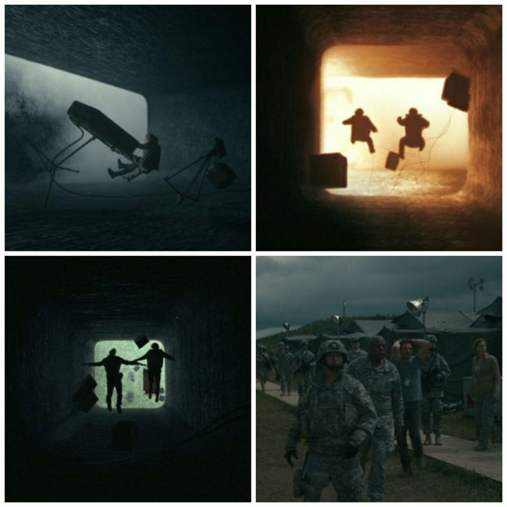 نکته جالب در اینجا اینست که،بمحض ورود به وسیله فرازمینی، جاذبه زمین برداشته می شود و در حالیکه دالان بصورت عمودی است اما آنها می توانند براحتی در داخل آن قدم زنند، آنها بسمت انتهای دالان که انگار یک خروجی یا پورتالی به دنیای دیگری است حرکت می کنند و موعد فرا می رسد.