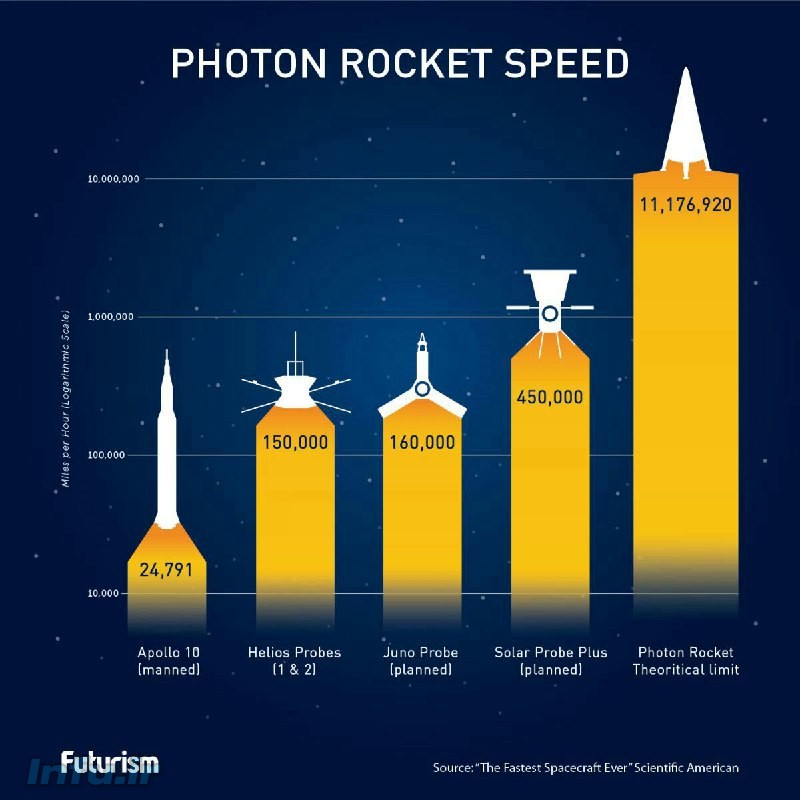 مقاله آقای هاگز راکت فرضی ما را گونه ای طراحی میکند که بتواند از از فوتون به عنوان یک نیروی محرک استفاده کند. این موشک فوتونی ما در صورت تحقق یافتن میتواند با اسان ساختن سفر به اعماق فضا کیهان را به روی ما بگشاید. این ایده ممکن است که نا محتمل باشد امام بنیاد های ریاضی و مهندسی آن در حیطه قوانین فیزیک قرار می گیرد.