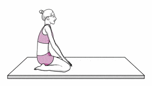- روی سطح نرمی دو زانو بنشینید، سپس کمر را رو به جلو خم کرده و در حالی که تلاش می کنید تا نوک بینی به زمین برسد تا جایی که میتوانید دست هایتان را بکشید.