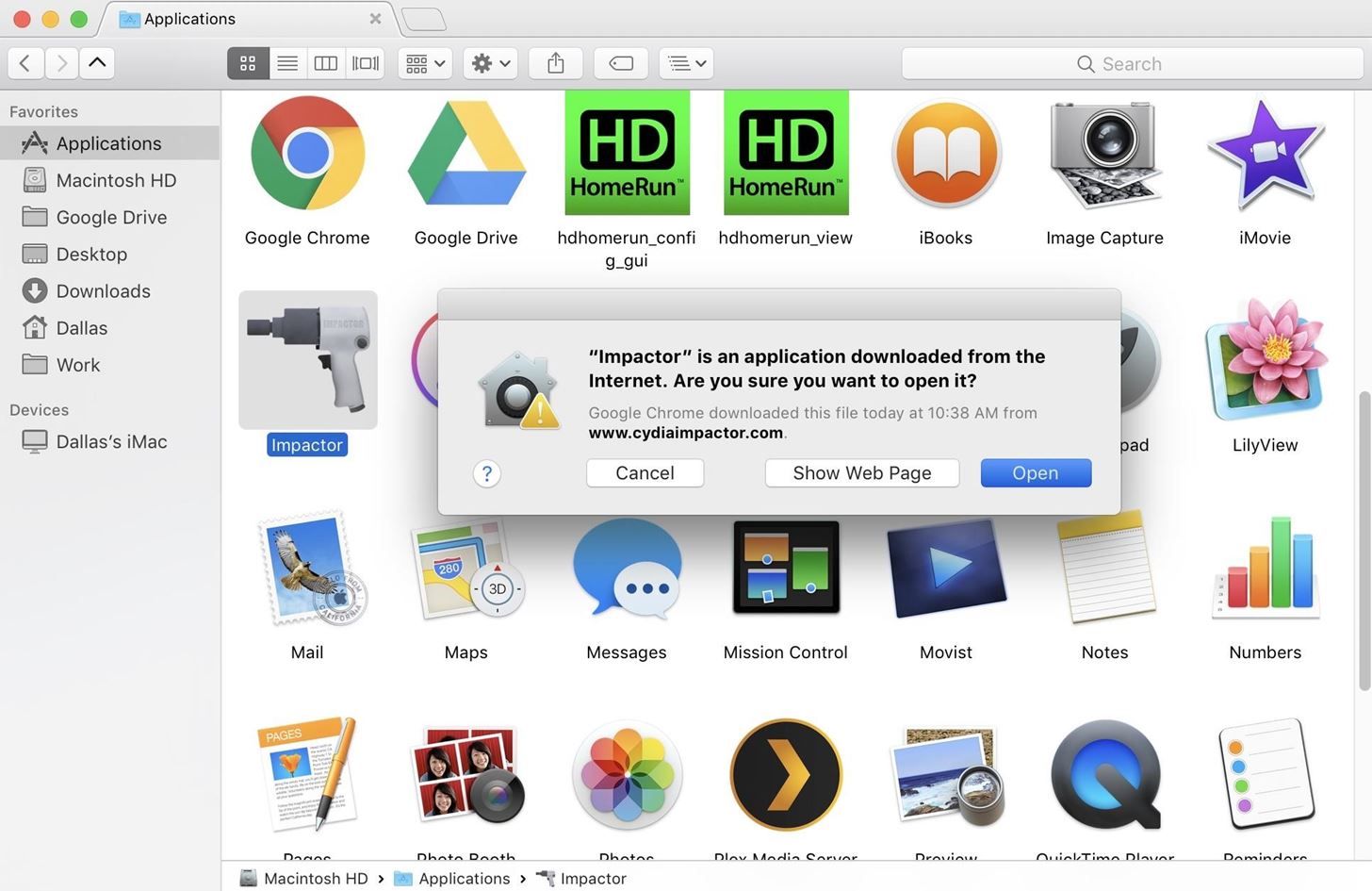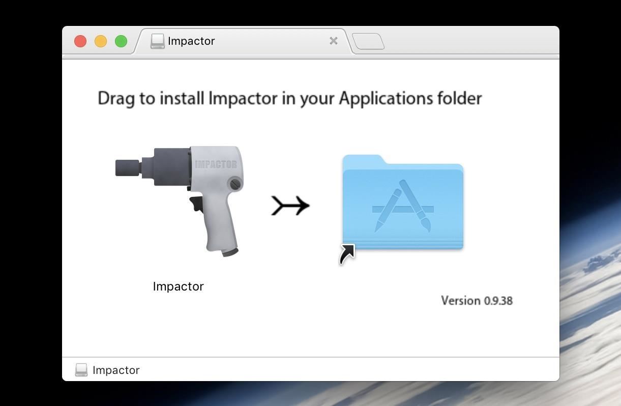 اگر از یک کامپیوتر مک استفاده می کنید کافی است تا آیکون Impactor را از فایل DMG به داخل پوشه Applications کشیده و رها کنید تا نرم افزار مورد نظر نصب شود.