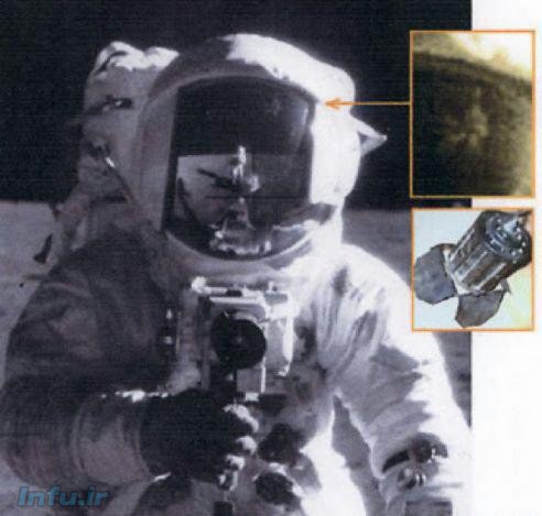 پس از انتشار عکسهای ناسا از ماه، شکاکان سریعا در یک عکس از شیشه هلمت فضانورد شی عجیبی دیدن که اصلا نباید وجود می داشت،برخی گفتند احتمالا یک نورافکن مخصوص استودیو فیلمبرداری است