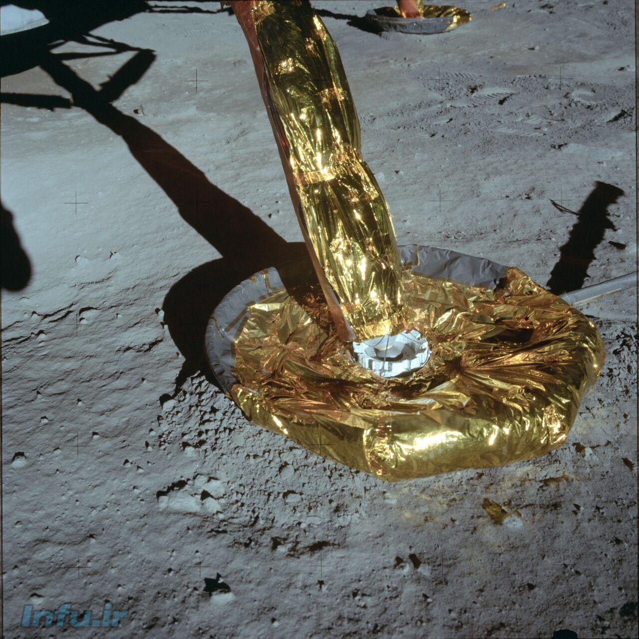 یکی از اشکالات همین عکس بود که چطور فضاپیمای ماه روی سطح ماه با آن اگزوزش نشسته و هیچ گرد و خاکی روی پایه فضاپیما ننشسته!و پایه مثل آینه تمیز است.