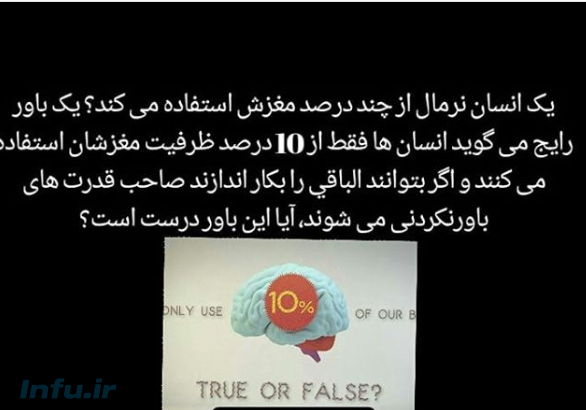يكي از سوالاتيكه ممكن است در اذهان ما شكل گيرد اينست كه ما چه اندازه از ظرفيت مغزمان را مورد استفاده قرار مي دهيم؟ چند درصد را ؟ سوال بسيار جالبي است و در اين زمينه يك تصور رايج وجود دارد كه ما انسان ها تنها فقط از 10 درصد ظرفيت مغز مان استفاده مي كنيم و 90 درصد بلا استفاده مانده است. يك قول عاميانه ما ايراني ها اينست كه مي گوييم طرف مغزش اكبند است. اما سوالي كه پيش مي آيد اينست كه آيا ما نمي خواهيم از اين ظرفيت كامل مغزمان استفاده كنيم يا نمي توانيم؟ به باور برخي ما نمي خواهيم و اگر بخواهيم مي توانيم و چنانچه بتوانيم الباقي توان مغزمان را بكار اندازيم صاحب قوا و قدرت هاي فوق بشري مانند تله كينزي،تله پاتي، پيشگويي و….. خواهيم شد. اما آيا اين تصور درست است؟ بر اساس نتايج نظرسنجي ها در امريكا تقريبا نيمي از مردم اين تصور را دارند اما لازم است بدانيد كه بر اساس تحقيقات گسترده دانشمندان در اين زمينه ، تصور 10 درصد يك افسانه است و بهيچوجه واقعيت ندارد و انسان در طول شبانه روز، بطور كامل و صد در صد از ظرفيت مغزش استفاده مي كند. علم نوروسايكولوژي به ما مي گويد كه مغز بخش هاي مختلفي دارد و هر بخش مسئول يك وظيفه خاص است و از اين گذشته تكنولوژي تصويربرداري از مغز نشان مي دهد كه هيچ قسمتي از مغز انسان غيرفعال نيست. مثالي مي زنم اگر تصور 10 درصد درست باشد و فردي به سرش بر اثر تصادف،مسموميت يا سانحه ديگري صدمه وارد امده باشد عملا نمي بايست تاثير چنداني در كاركرد روزانه مغزش داشته باشد.