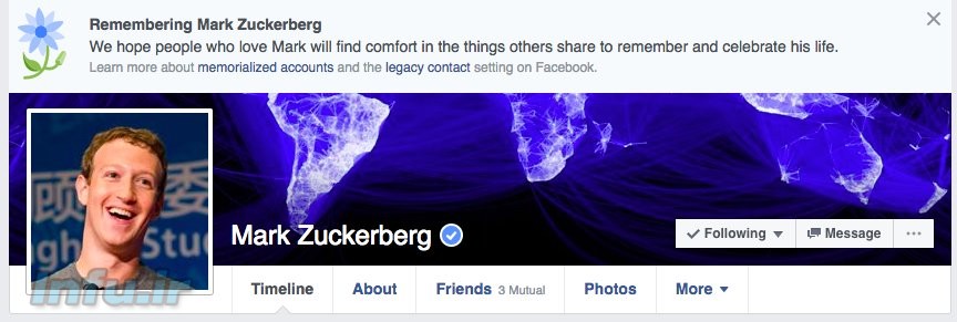 اگر روز جمعه وارد پروفایل فیسبوک خود میشدید، این احتمال وجود داشت که مشاهده میکردید فوت کردهاید! این باگ فیسبوک باعث شده بود که تعداد زیادی از کاربران از جمله خود مارک زاکربرگ، یک بنر یادبود که مخصوص از دنیا رفتگان است، سردر صفحهٔ خودشان ببینند.