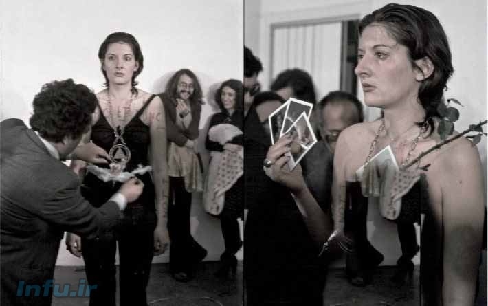 در سال 1974 زنی بنام مارینا آبرامووویچ، دست به یک آزمایش هنری بسیار خطرناک بنام ریتم صفر زد. مارینا اصالتا متولد بلگراد، یوگسلاوی سایق است.ریتم صفر ،یک ایفای نقش هنری 6 ساعته بود که در سال 1974 در استودیوی مورنا در ناپل انجام شد.در طی این نمایش او برای مدت 6 ساعت بدون حرکت در جایی می ایستاد و بر روی میزی در نزدیکی او یک نوشته گذاشته شده بود و در آن نوشته بود، شما می توانید هرکاری می خواهید انجام دهید و بر روی میز هفتاد وسیله مختلف از قبیل چاقو، قیچی حتی هفت تیر، ماژیک، تیغ، گل و تعداد زیاد دیگری اشیاء مختلف گذاشته شده بود.در ساعات اول مردم بسیار مهربان بودند و مرتب به او گل می دادند،