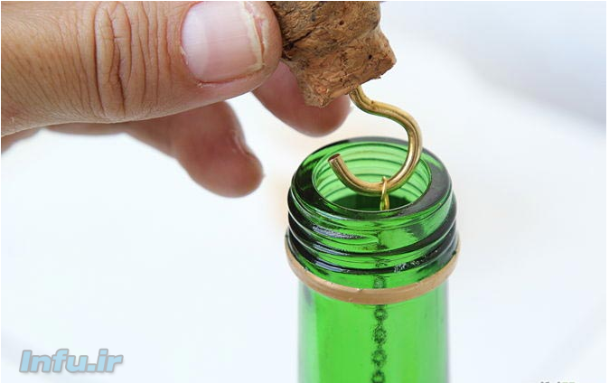 9 – پیچ ها را با استفاده از انبر دست به داخل چوب پنبه ها قرار دهید . دقت کنید پیچ ها کاملا محکم شده باشند