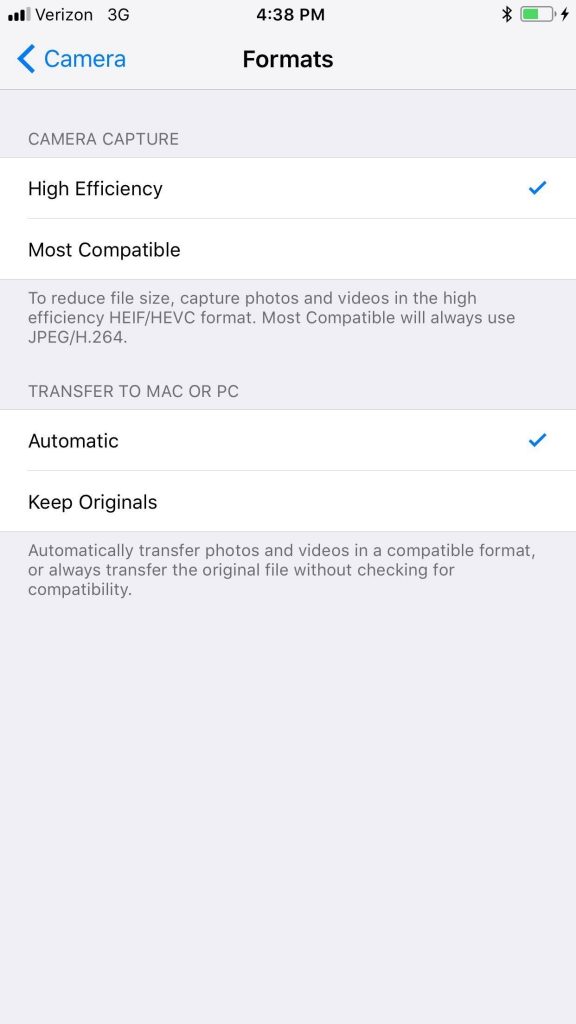 به این ترتیب در آی او اس جدید عکس ها با فرمت HEIF و فیلم ها با فرمت H.265 ثبت می شوند. البته شما اگر با این فرمت ها مشکل دارید می توانید در بخش تنظیمات دوربین آن ها را مورد بررسی قرار داده و تنظیمات را مطابق آن چه دوست دارید اوکی کنید.